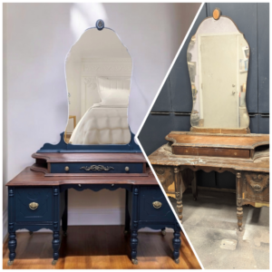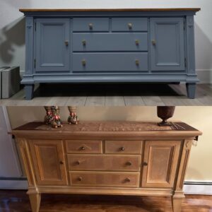 As you can see from my listings, I prefer vintage and antique. Sometimes I paint, sometimes I stain, sometimes I do both. It all depends upon the piece that I’m working on, whether it’s for sale or for a customer. Yes, I do custom work! Below, you will find a few before and after photos as well as links to my fee schedules.